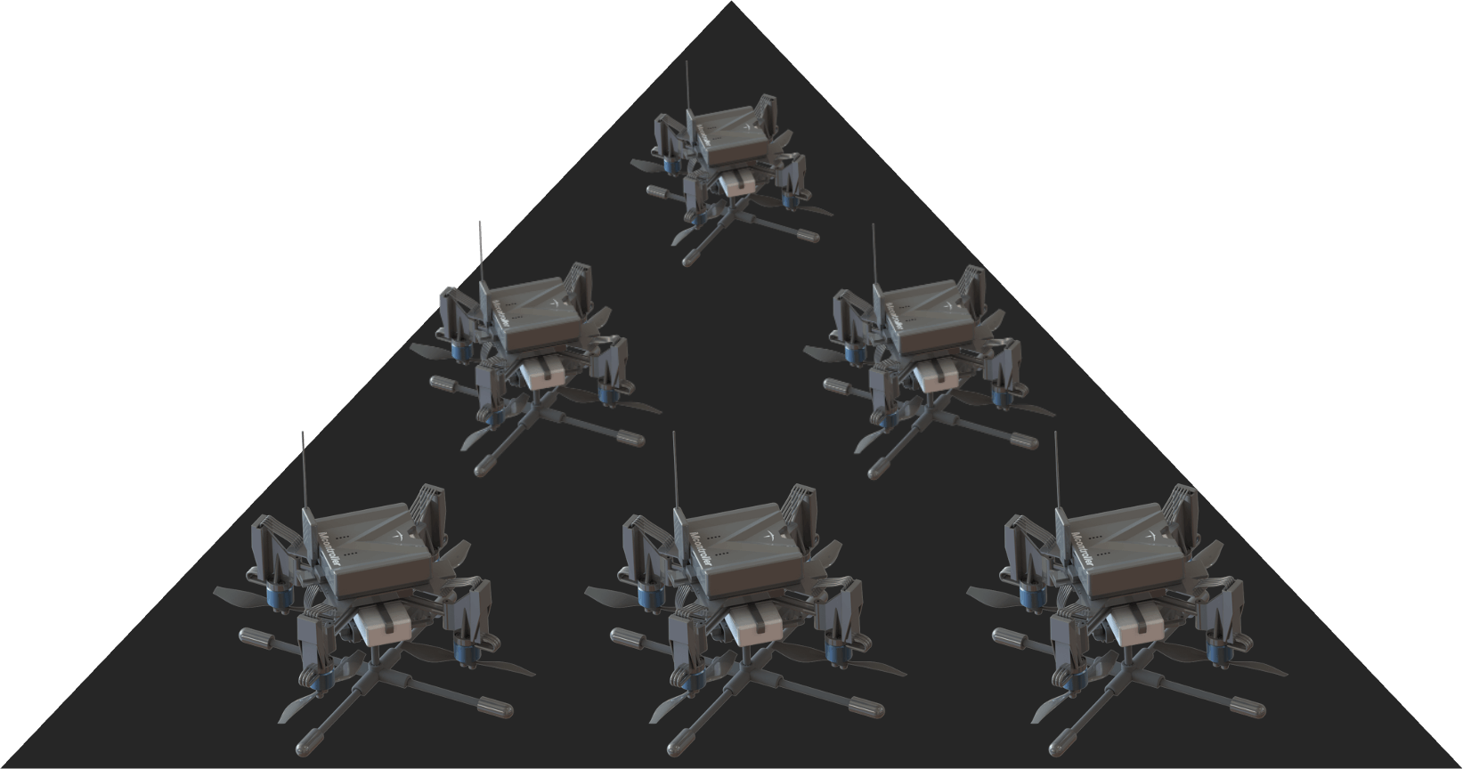 FanciSwarm™无人机实时测量到四个基站的距离,并接收来自基站和其他无人机的数传数据,通过配套的App或者配套的集群调度系统可实时查看。