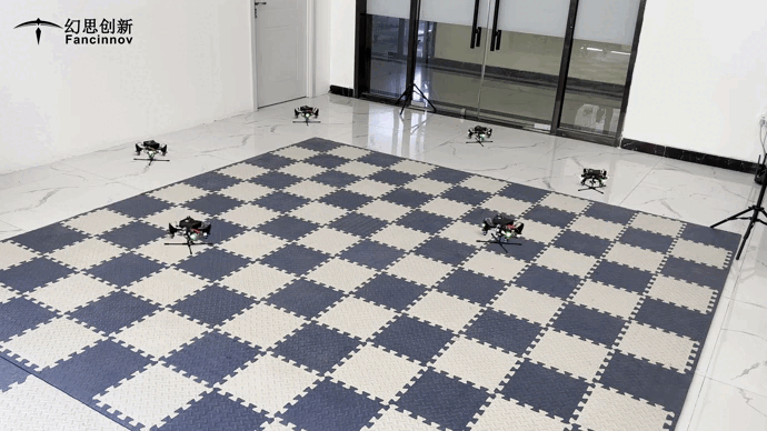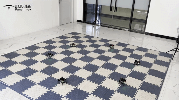 基于全栈自研的高精度 UWB 定位系统,FanciSwarm实时完成位置估计后自主依据集群算法精准飞行,整个飞行过程借助ROS通信完成。