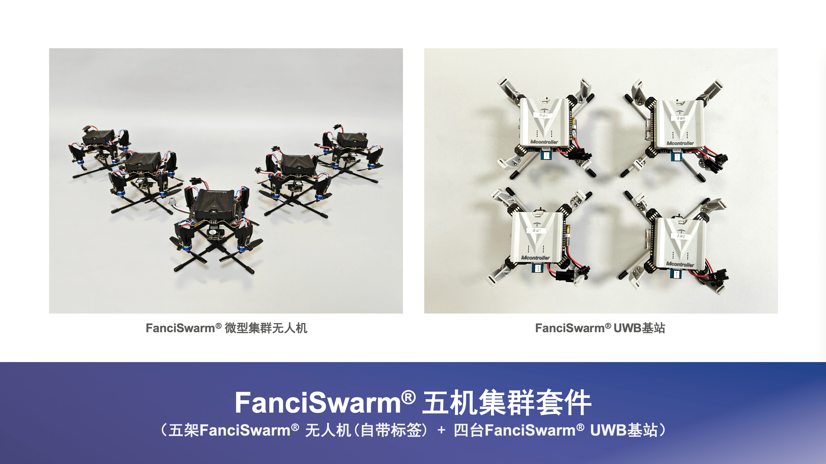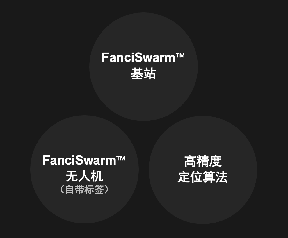 是什么? FanciSwarm® 集群套件基于 FanciSwarm® 高精度UWB定位系统。该系统是一种基于超宽带无线电技术(Ultra Wideband,简称UWB )的定位系统,用于确定空间中无人机的绝对三维位置(x、y和z坐标)。