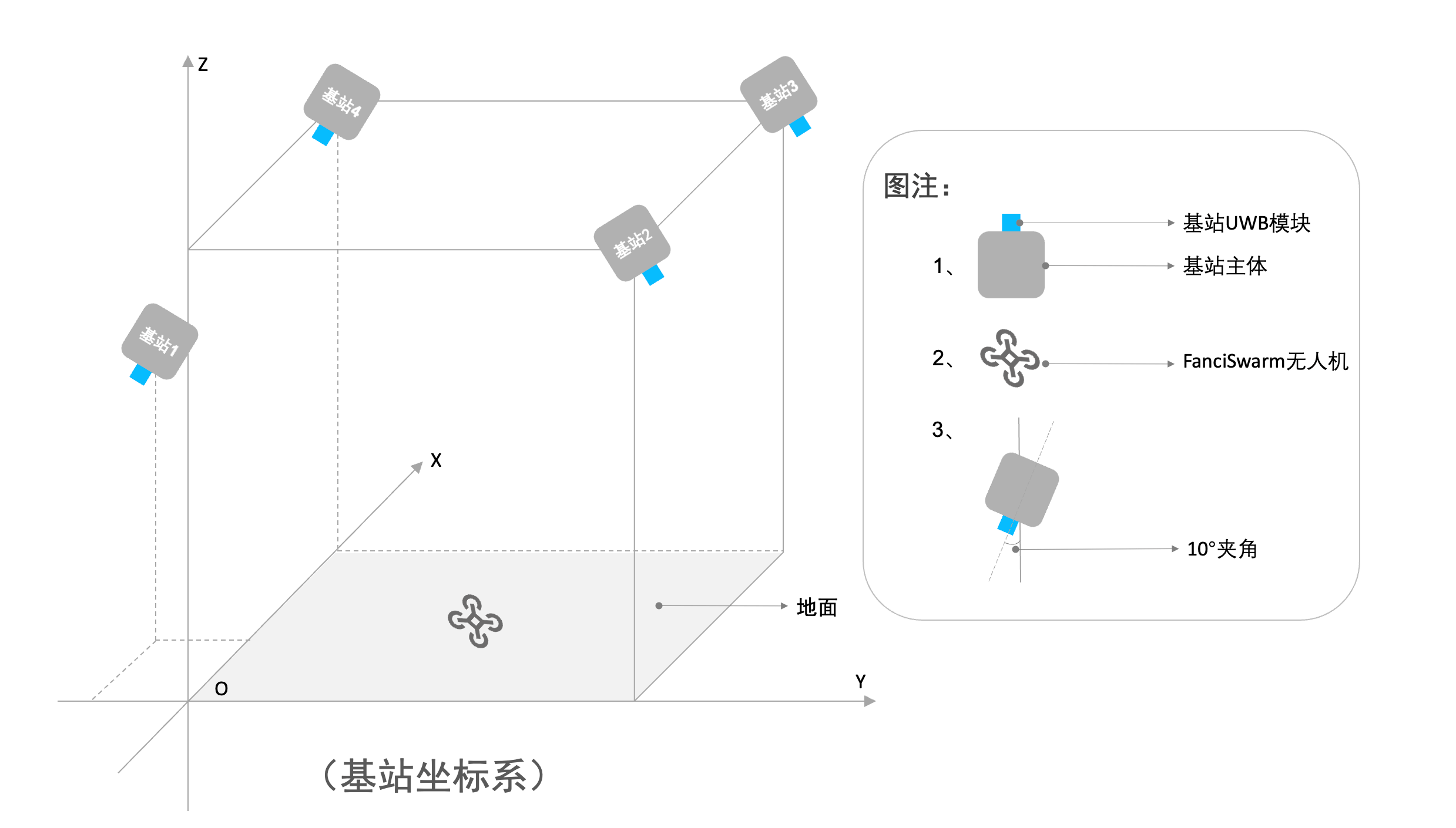 看家本领。基于FanciSwarm® 全自研的高精度 UWB 定位系统,无人机实时完成位置估计后自主依据集群算法精准飞行,整个飞行过程借助ROS通信完成。