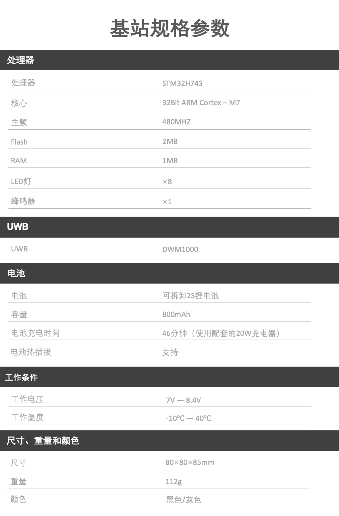 整套系统全自研,搭载DWM1000模块,精度小于10cm(3维定位定位精度取决于系统设置和环境)。采用分布式定位,自组网通信,测距定位通信一体化,并配套集群调度系统,部署简单,快速上手。