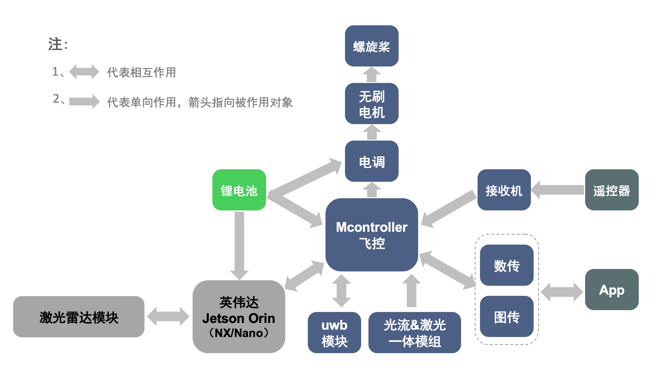 (1)为防止电池因过度放电而遭受永久性损伤,当不使用FanciSwarm® Pro时,请务必确保电池与飞控扩展板之间的连接已被彻底断开!