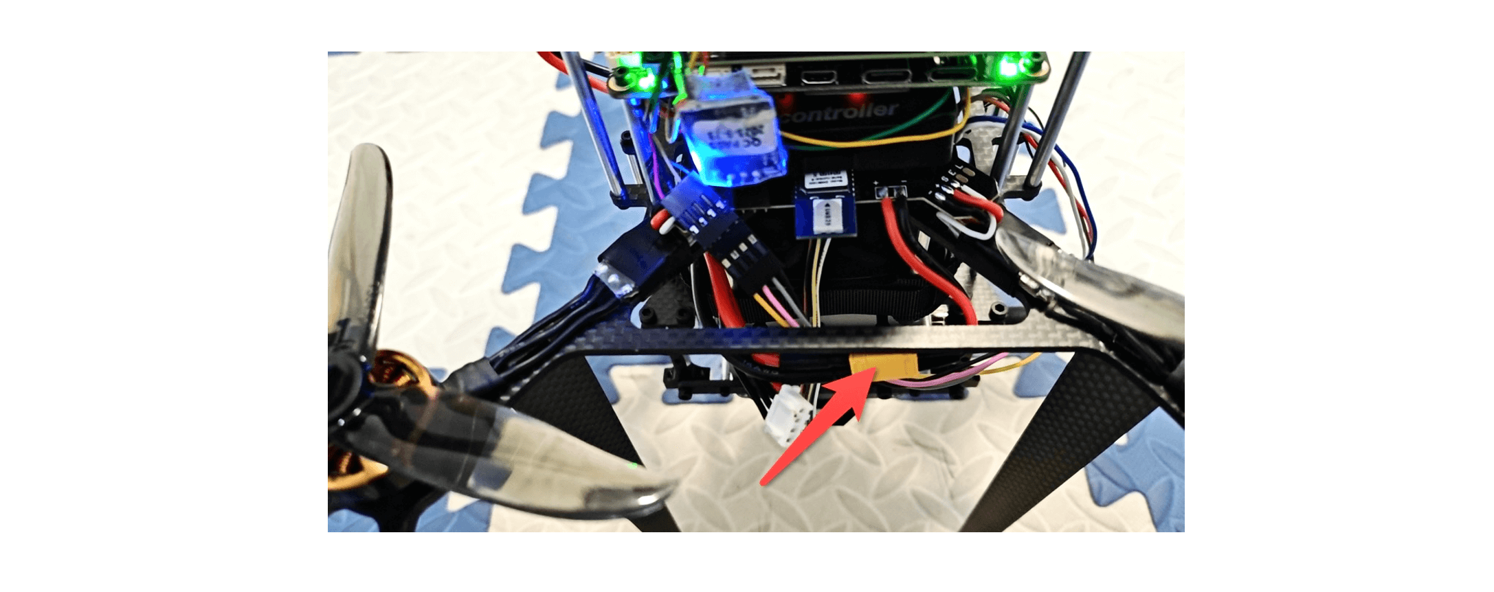 将飞控扩展板的电源连接口与电池的供电头连接即可开启电源。