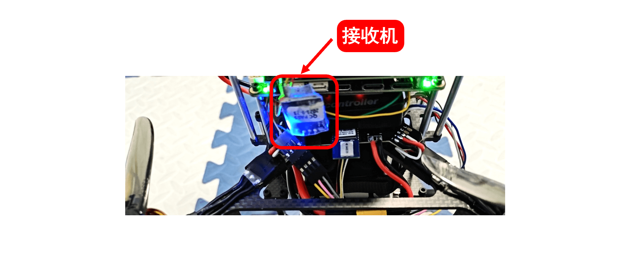 确保遥控器接收机正确安装在FanciSwarm® Pro 机体上,安装位置可参照下图: